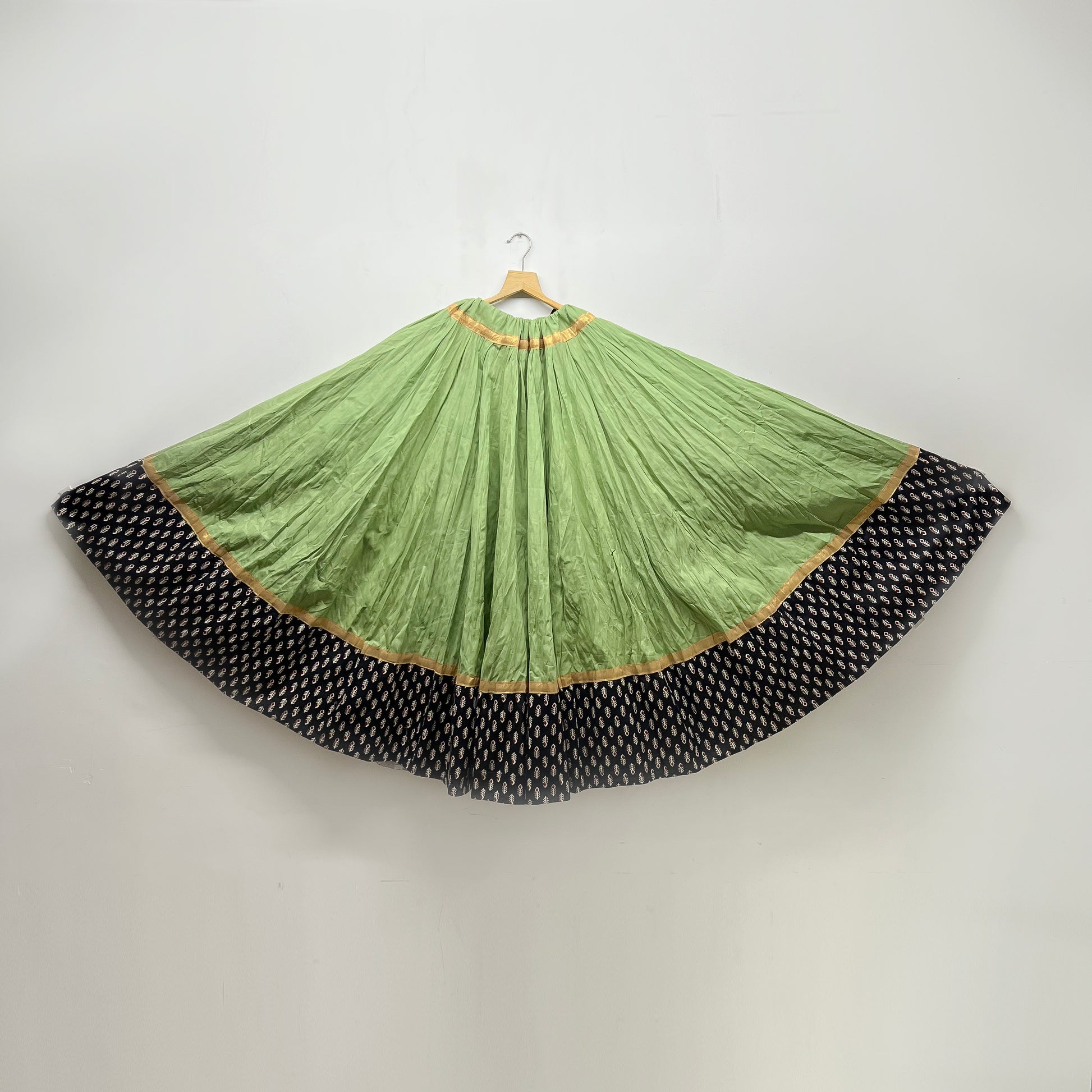 - Color: Graceful Light Green Ghaghra with Black Printed Border