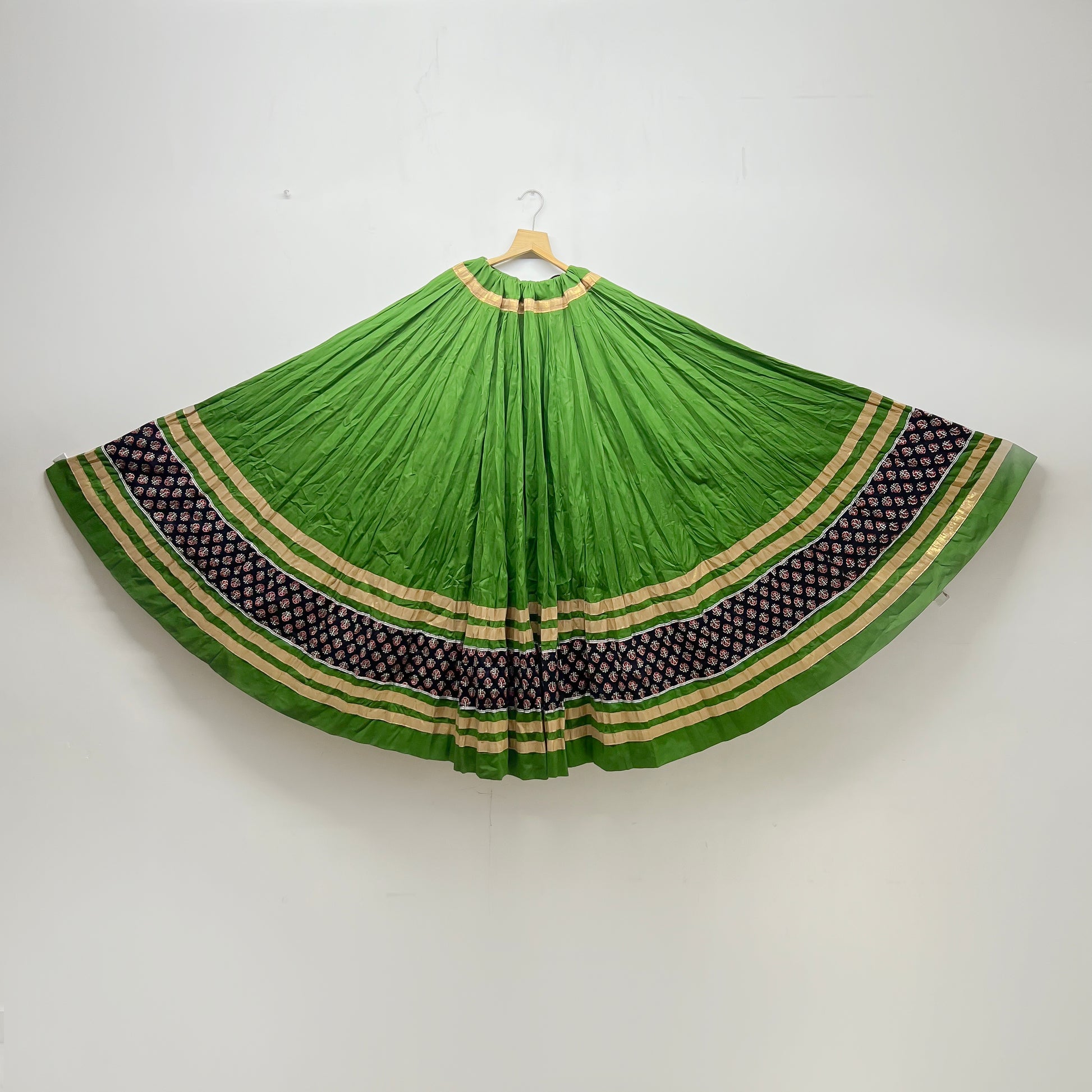 Lively green with printed navy border and golden detailing